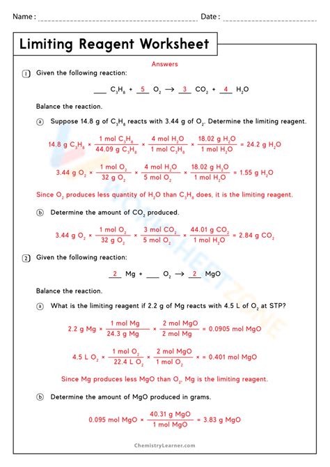 Limiting Reactant Practice Problems Worksheet Answers
